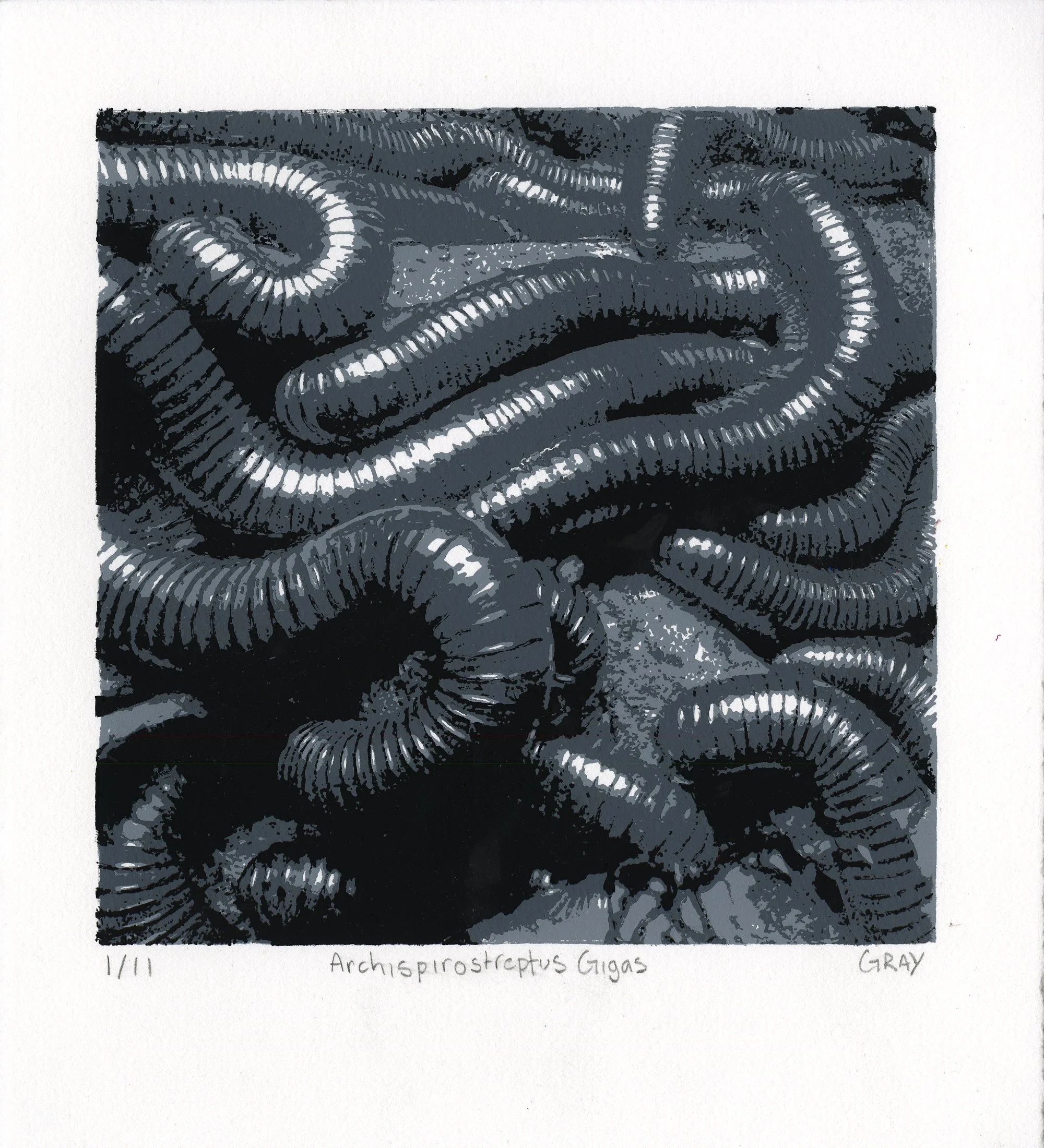 From afar, they look like photos. As you get closer and begin to examine the prints, you see the layers, the lines, the dots, the chunky blocks of color. By vast margin, the transparencies were the longest part of this process. I was very dedicated to treating these creatures with respect and capturing their likenesses.