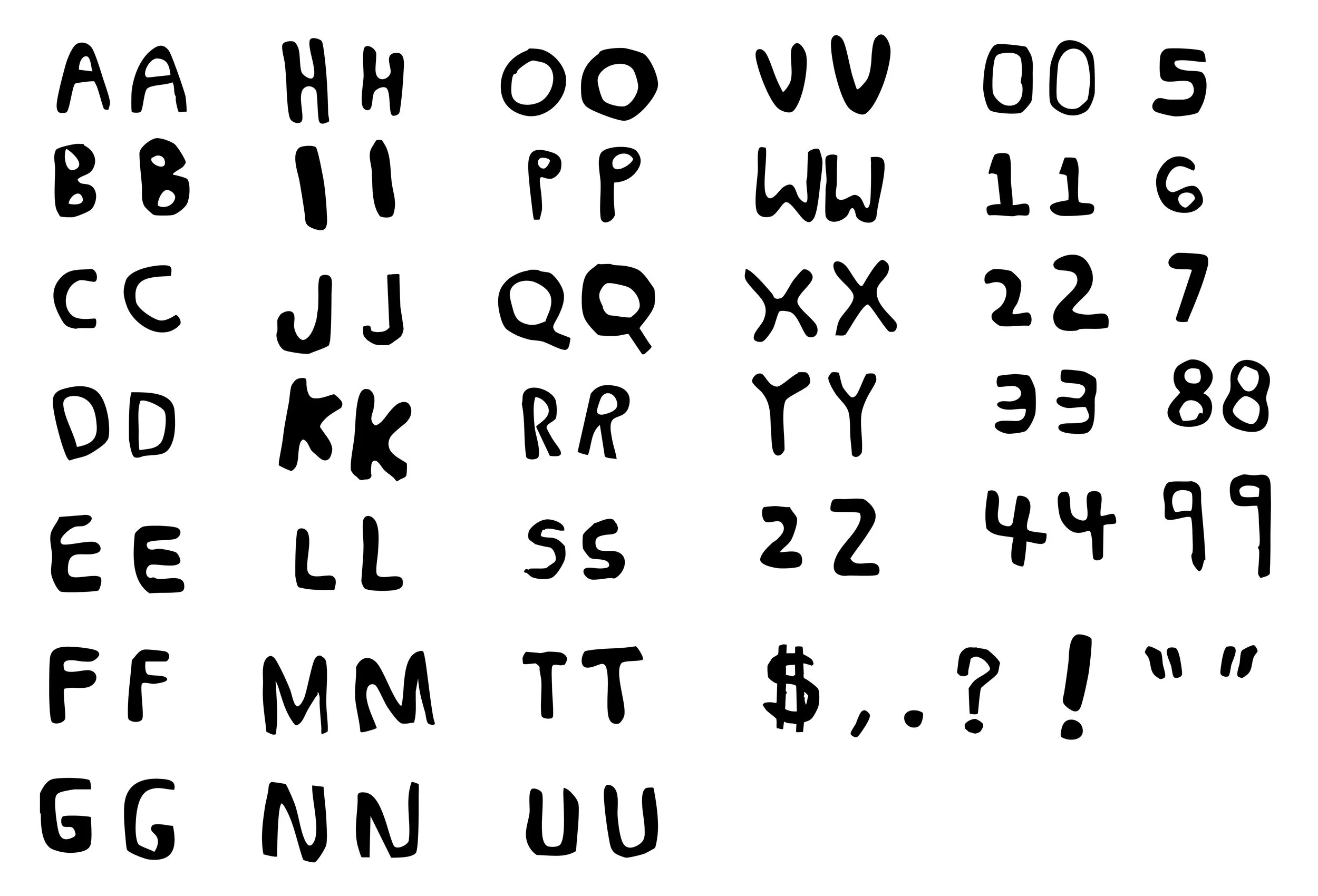 This process started by taking his signature hand-cut letters and creating his very own font, Paul Handcut. I started with a bag of letters, identifying which ones were strong and readable but also fun and imperfect. After acquiring and vectorizing the letters, they were taken into FontForge to make a working font file.